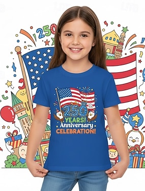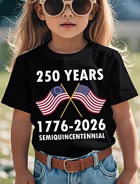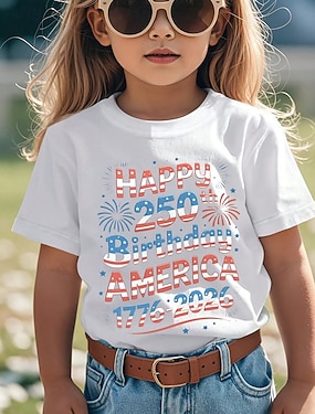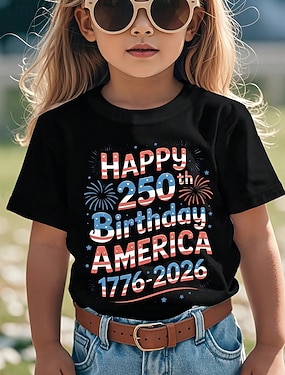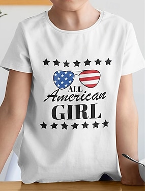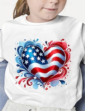 100% pamut Gyerekek Lány Fekete Grafika Križ 250. évforduló Gyerek amerikai zászló Póló Terített nyak Rövid ujjú Vakáció Sport & Szabadtéri Hétköznapi Aktív Szabadság Alkalmi Nyomtatás Nyár