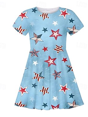 Girls ' 3D Grafika Csíkos Sztárok Ruha Rövid ujjú 3D nyomtatás Nyár Tavasz Napi Vakáció Parti aranyos stílus Alap Alkalmi Gyerekek Gyermek 4-12 év hétköznapi ruha A vonalú ruha Térdig érő Normál