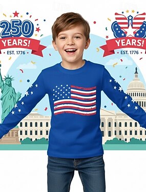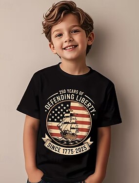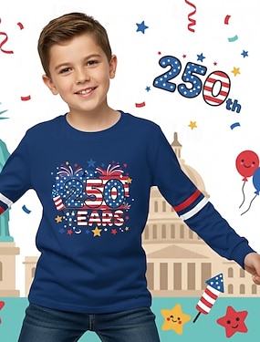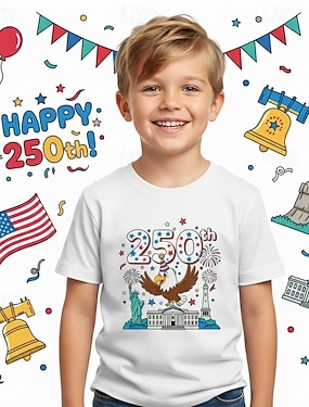 100% pamut Gyerekek Fiú Fekete Fehér Csónak AEÁ zászló 250. évforduló Póló Blúz Terített nyak Rövid ujjú Szabadtéri Hétköznapi Divat Utcai sikk Dizájn Nyomtatás Nyár