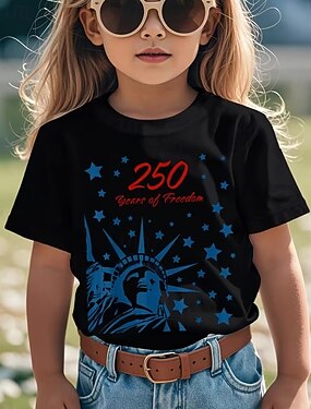 100% pamut Gyerekek Lány Fekete Grafika Szabadságszobor 250. évforduló Gyerek amerikai zászló Póló Terített nyak Rövid ujjú Vakáció Sport & Szabadtéri Hétköznapi Aktív Szabadság Alkalmi Nyomtatás Nyár