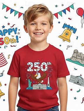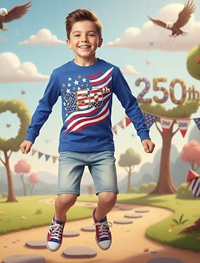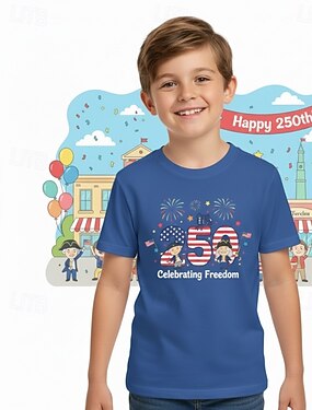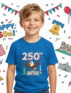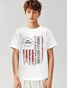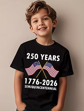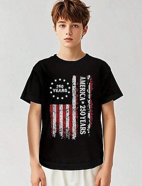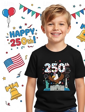 100% pamut Gyerekek Fiú Fekete Grafika AEÁ zászló 250. évforduló Póló Blúz Terített nyak Rövid ujjú Szabadtéri Hétköznapi Divat Utcai sikk Dizájn Nyomtatás Nyár