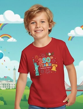 100% pamut Gyerekek Fiú Fekete Fehér Rubin Zászló Hajó 250. évforduló Póló Blúz Terített nyak Rövid ujjú Szabadtéri Hétköznapi Divat Utcai sikk Dizájn Nyomtatott Nyár