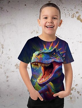 Fiú 3D Rajzfilm Dinoszaurus Póló Rövid ujjú 3D nyomtatás Nyár Tavasz Aktív Sportok Divat Gyerekek 3-12 év Szabadtéri Hétköznapi Napi Normál