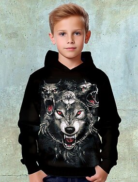 Fiú 3D Grafika Kapucnis felsőrész Pullover Hosszú ujj 3D nyomtatás Tavasz Ősz Sportok Divat Utcai sikk Gyerekek 4-12 év Kapucni Szabadtéri Hétköznapi Napi Normál
