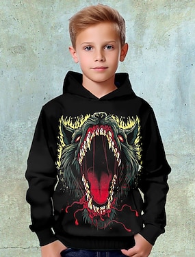 Fiú 3D Cápa Kapucnis felsőrész Pullover Hosszú ujj 3D nyomtatás Tavasz Ősz Divat Utcai sikk Menő Gyerekek 3-12 év Kapucni Szabadtéri Hétköznapi Napi Normál