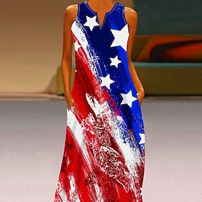 Függetlenség Napja Patrióta Női Maxi Ruha Szift Ruha Nyári Ruha Hétköznapi Ünnepi Normál Fit Zászló Ujjatlan Kerek Nyakú Borvörös Tengerészkék Kék Nyár