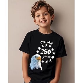 100% pamut Gyerekek Fiú Fekete Grafika Sas 250. évforduló Póló Blúz Terített nyak Rövid ujjú Szabadtéri Hétköznapi Divat Utcai sikk Dizájn Nyomtatás Nyár
