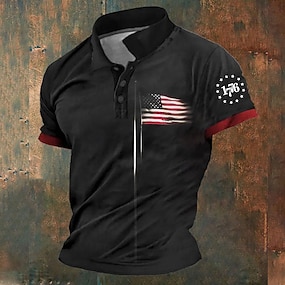 2026. július 4. 250. Férfi Amerikai zászló Veteránok Gofris pólóingek Golfing Rövid ujjú Pólóingek Galléros ingek Utcai öltözék Nyaralási viselet Party ruhák 3D nyomtatás Gombok Nyár Tavasz Fekete