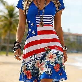 Amerikai függetlenség napja Női Mini ruha Nyári ruha Pólóruha A vonalú ruha Szabadság Alkalmi Boho Tengerpart Normál Virágos Grafika Zászló Rövid ujjú V-alakú Medence Rubin Nyár Tavasz