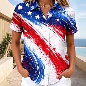 Amerikai függetlenség napja Női Póló Nyomtatott Grafika Zászló Stílusos Klasszikus Alkalmi Rövid ujjú Terített nyak Kerek Normál felsők Napi Medence Rubin Piros / Kék Nyár Tavasz