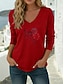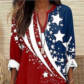 Amerikai függetlenség napja Női Póló Nyomtatott Grafika Amerikai zászló Szüret Stílusos Klasszikus Hosszú ujj V-alakú Normál felsők Napi Hétvége Medence Fekete Fehér Rubin Nyár Tavasz Ősz