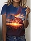 Függetlenség Napja Hazafias Női póló Grafikai Zászló Vintage Hétköznapi Rövid Ujjú Kerek Nyakú Normál Pólók Napi Hétvégi Nyomtatás Fehér Vörös Kék Poros Kék Nyár Tavasz