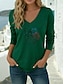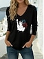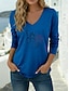 Amerikai függetlenség napja Női Póló Hosszú pamut felsők Tee Top Nyomtatott Grafika Stílusos Klasszikus Alkalmi Hosszú ujj V-alakú Normál felsők Napi Alkalmi Hétvége Medence Fekete Fehér Rubin Lóhere