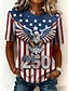 Függetlenség Napja Patrióta Női Póló Zászló Stílusos Hétköznapi Piros Fehér És Kék Piros Fehér És Kék Rövid Ujjú V Nyakú Normál Felsők Nyomtatás Kék Nyár