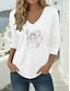 Függetlenség Napja Patrióta Női Blúz Grafika Zászló Vintage Stílusos Kényelmes 3/4-es Ujjú V Nyakú Szokásos Felsők Mindennapi Fehér Piros Kék Nyár Tavasz