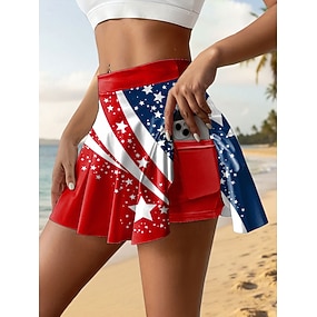 Függetlenség Napja Patrióta Női Tenisz Szoknya Divat Alkalmi Mini Magas Derékú Szoknyák Grafika Rugalmas Mindennapi Tengerpart Kék Piros Lila Khaki Nyár 95% Pamut 5% Spandex