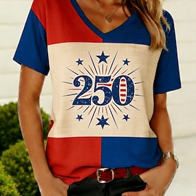 Amerikai függetlenség napja Női Póló Tee Top Nyomtatott Grafika Amerikai zászló Csehország Szüret Stílusos Rövid ujjú V-alakú Normál felsők Napi Alkalmi Hétvége Medence Rubin Khakizöld Nyár Tavasz