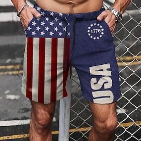 Férfi Július 4-én, az Egyesült Államok 250. évfordulóján Amerikai zászló Hazafias Úszónadrágok Deszkás short Úszónadrág Közepes csípő Hawaii Vakáció Szabadság Strandruházat Oldalzsebek Hálós bélés