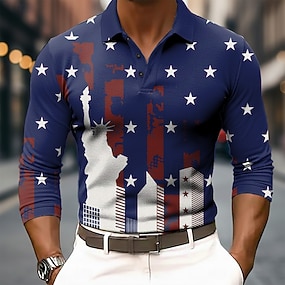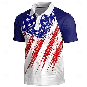 2026. július 4. 250. Férfi Amerikai amerikai zászló Póló Rövid ujjú Pólóingek Galléros ingek Alkalmi Szabadtéri Hétköznapi viselet 3D nyomtatás Nyár Tavasz Ősz Medence