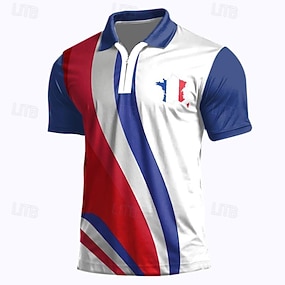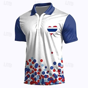 2026. július 4. 250. Férfi Amerikai amerikai zászló Cipzáras pólóingek Rövid ujjú Pólóingek Galléros ingek Alkalmi Sportruházat Hétköznapi viselet 3D nyomtatás Nyár Medence Fehér