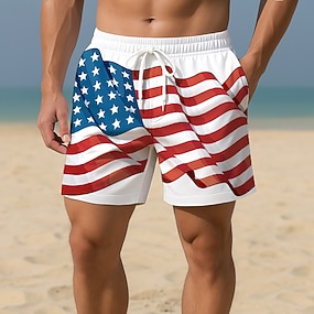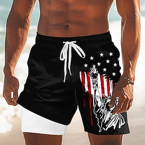 Függetlenség Napja Férfiak Patrióta USA Zászlós Bélelt Nadrág 2 az 1-ben Deszkásnadrág Fürdőnadrág Közepes Derék Ünnep Oldalsó Zsebek Kompressziós Bélés Rugalmas Zsinóros Derék