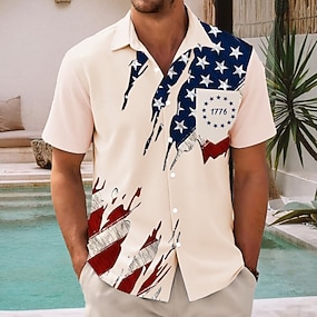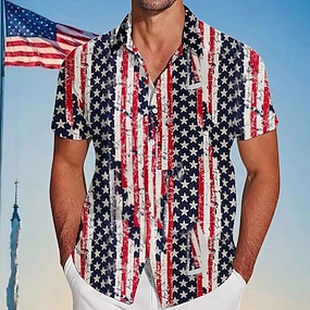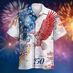 Férfi Amerikai amerikai zászló Július 4-én, az Egyesült Államok 250. évfordulóján Veteránok Ing Alkalmi ing Kubai ing Rövid ujjú Army Militray Utcai öltözék Szabadság Nyár Tavasz Camp Gallér ing 3D