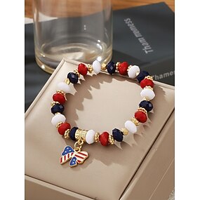 Női ötvözetből és akrilból készült hazafias medálos karkötő, rugalmas gyöngyös karkötő többféle medálból Amerika 250. évfordulójának ünneplésére, a függetlenség napjára és mindennapi viseletre