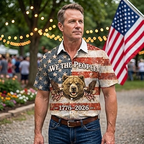 2026. július 4. 250. Férfi Amerikai zászló Veteránok Gofris pólóingek Golfing Rövid ujjú Pólóingek Galléros ingek Utcai öltözék Nyaralási viselet Party ruhák 3D nyomtatás Gombok Nyár Tavasz Szürke