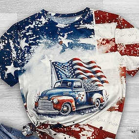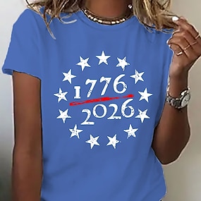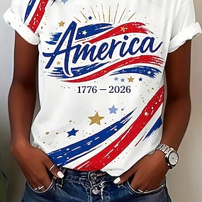 Amerikai függetlenség napja Női Póló Színes Nyomtatott Grafika Amerikai zászló Divat Stílusos Klasszikus Rövid ujjú Terített nyak Normál felsők Hétköznapi Napi Medence Fehér Rubin Nyár Tavasz