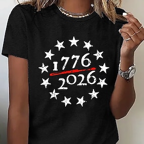 Amerikai függetlenség napja Női Póló Nyomtatott Grafika Amerikai zászló Divat Stílusos Klasszikus Rövid ujjú Terített nyak Normál felsők Hétköznapi Napi Medence Fekete Fehér Égszínkék Nyár Tavasz