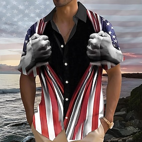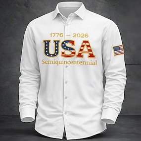 Függetlenség napja Férfi Július 4-én, az Egyesült Államok 250. évfordulóján Amerikai zászló Hazafias Ing Nyári póló Gombos póló Rövid ujjú Alkalmi divat Szabadtéri Vakáció Hétköznapi Nyár