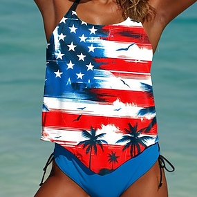 Amerikai függetlenség napja női fürdőruha tankini kétrészes alsónadrág fürdőruha hát nélküli vakációs strandruha zászlós nyakpántos ujjatlan fürdőruhák