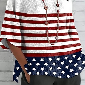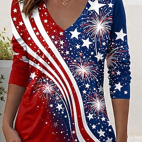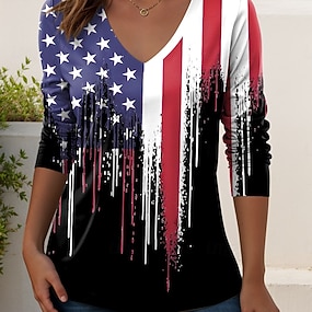 Függetlenség Napja Amerikai Évforduló Patriotikus Női Póló Grafika Zászló Stílusos Hétköznapi Hosszú Ujjú Kerek Nyakú Rendszeres Felsők Napi Nyomtatás Kék Fehér Piros Nyár Tavasz
