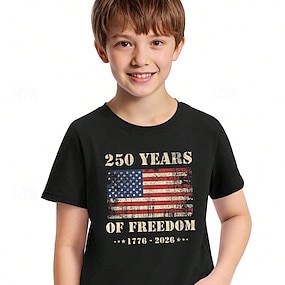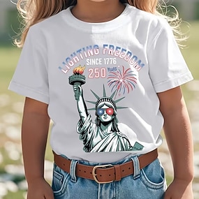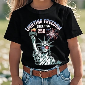 100% pamut Gyerekek Lány Fekete Fehér Grafika 250. évforduló Gyerek amerikai zászló Póló Terített nyak Rövid ujjú Vakáció Sport & Szabadtéri Hétköznapi Aktív Szabadság Alkalmi Nyomtatás Nyár