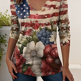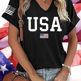 Függetlenség Napja Patrióta Női Póló Zászló Zászló Nemzeti Zászló Stílusos Laza Piros Fehér és Kék Rövid Ujjú V Nyakú Rendszeres Felsők Mindennapi Nyomtatás Fekete Nyár Tavasz