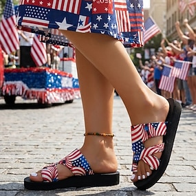 női usa 250 évfordulós csillagmintás szandál - kényelmes kék papucsok felvonulásokra, hazafias eseményekre, hétköznapi kirándulásokra és nyári ünnepségekre
