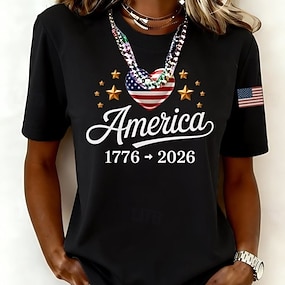 Függetlenség Napja Amerikai Évforduló Patrióta Női Póló Nyomtatás Grafika Zászló Betű Stílusos Klasszikus Kényelmes Rövid Ujjú Kerek Nyak Hosszú Felsők Napi Kék Fekete Fehér Piros Nyár Tavasz