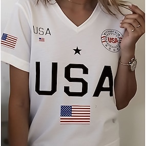 Függetlenség Napja Hazafias Női póló Grafikai Zászló Vintage Stílusú Klasszikus Rövid Ujjú V Nyakú Normál Pólók Napi Hétvégi Nyomtatás Fekete Fehér Szürke Nyár Tavasz