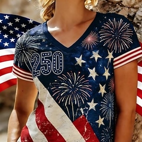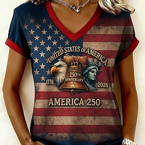 Függetlenség Napja Amerikai Évforduló Patrióta Női Póló Nyomtatás Grafika Zászló Retro Stílusos Klasszikus Rövid Ujjú V Nyak Szokásos Felsők Napi Kék Fekete Fehér Piros Nyár Tavasz