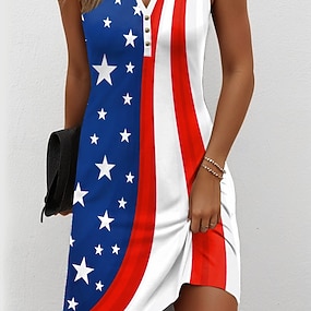 Amerikai függetlenség napja Női Mini ruha Pólóruha A vonalú ruha Szabadság Alkalmi Napi Normál Grafika Amerikai zászló Rövid ujjú V-alakú Medence Fehér Rubin Nyár Tavasz