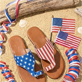 női piros kék USA 250. évfordulós zászlómintás ék alakú flip-flop szandál, hazafias, kényelmes nyári papucsok függetlenség napjára, ünnepi partikra &hétköznapi viselet