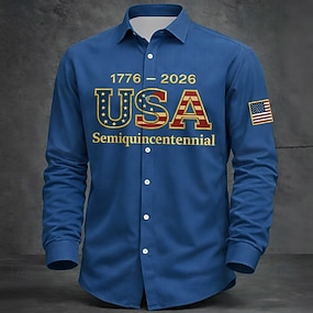 Férfi Július 4-én, az Egyesült Államok 250. évfordulóján Amerikai zászló Hazafias Ing Gombos póló Hosszú ujj Vintage Retro Szabadság Alkalmi / Napi Tavasz Ősz Térfogatcsökkenés 3D nyomtatás