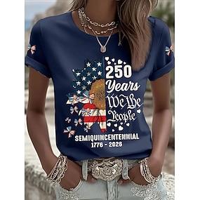 Amerikai függetlenség napja Női Póló Nyomtatott Grafika Amerikai zászló Szüret Stílusos Klasszikus Rövid ujjú Terített nyak Kerek Normál felsők Hétköznapi Napi Medence Fekete Fehér Rubin Szürke Nyár