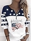 Függetlenség Napja Patrióta Póló Nők Pulóver Póló Cipzáras Pulóverek Grafikus Csíkos Divat Kényelmes Hosszú Ujjú Kerek Nyakú Utca Napi Használatra Cipzáras Nyomtatás Kék Piros Tavasz Ősz Tél