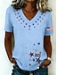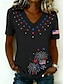 Függetlenség Napja Patrióta Póló Női T-Shirt Grafikus Zászló Vintage Stílusú Klasszikus Rövid Ujjú V Nyakú Normál Felsők Mindennapi Hétvégi Nyomás Fekete Fehér Sárga Kék Nyár Tavasz