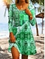 Női Maxi Ruha A Vonalú Ruha Redőzött Ruha Felsőrész és Felszabdalt Ruha Boho Randevú Normál Illeszkedés Virágos Grafika Hosszú Ujjú V Nyak Zöld Tavasz Ősz Tél