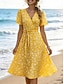 Női Midi ruha hétköznapi ruha A vonalú ruha Elegáns Szabadság aranyos stílus Szabadság Randi Normál Virágos Grafika Rövid ujjú V-alakú Medence Sárga Arcpír rózsaszín Bíbor Nyár Tavasz Ősz Tél