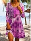 Női Térdig érő ruha Pólóruha A vonalú ruha Alkalmi Normál Grafika Boho Paisley Damaszk Hosszú ujj Terített nyak Kanálnyak Medence Arcpír rózsaszín Narancssárga Lóhere Tavasz Ősz Tél