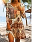 Női Midi ruha hétköznapi ruha Nyári ruha Szabadság Alkalmi Strand stílusok Tengerpart Parti Laza öltözet Grafika Mértani Rövid ujjú V-alakú Sárga Arcpír rózsaszín Barna Lóhere Nyár Tavasz