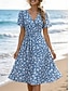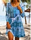 Női Mini ruha hétköznapi ruha Pólóruha Nyári ruha A vonalú ruha Stílusos Alkalmi Tengerpart Normál Virágos Grafika Falevél Rövid ujjú Terített nyak Kanálnyak Medence Tintakék Világoskék Nyár Tavasz